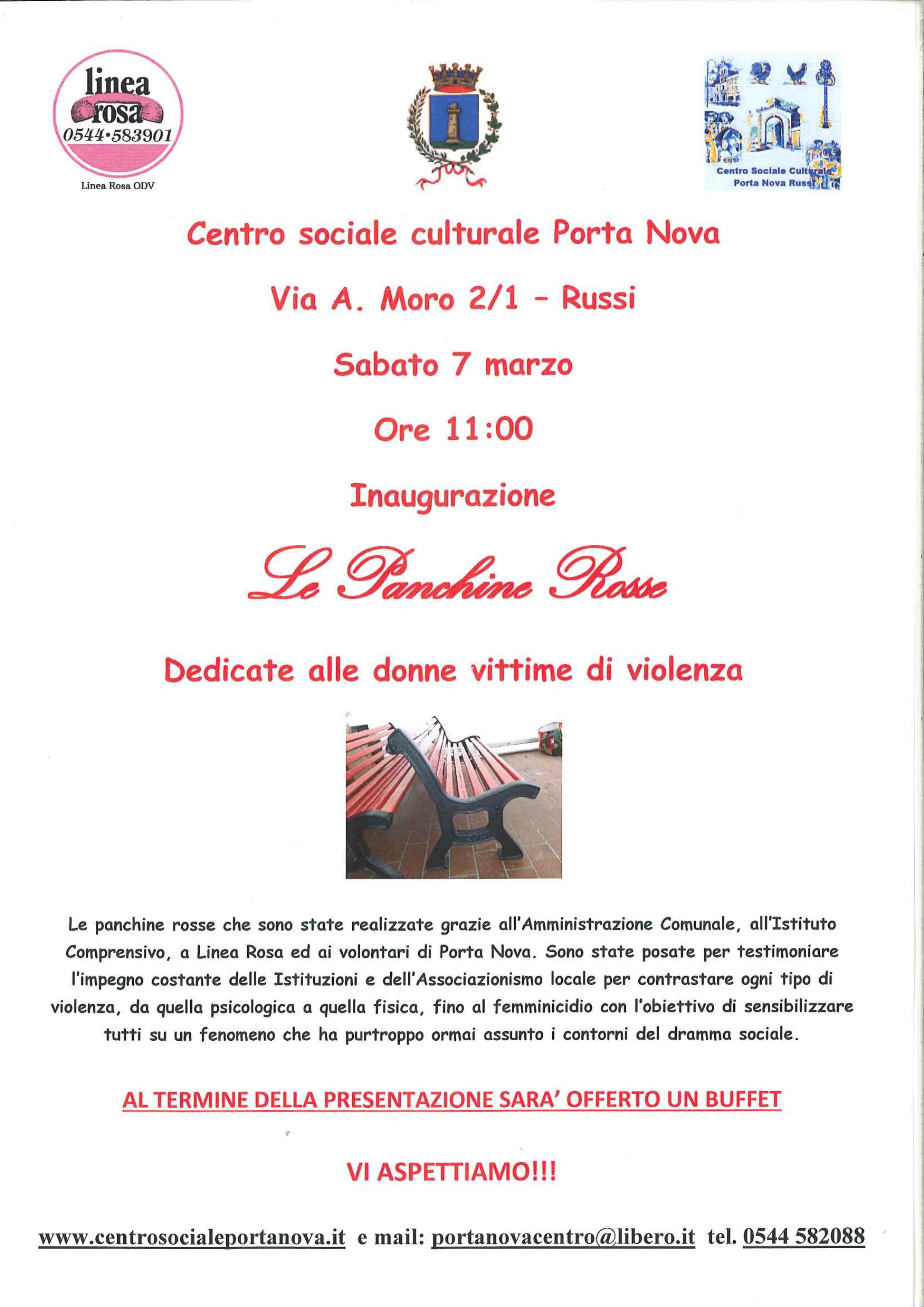 Il 7 Marzo il Centro Sociale Culturale “Porta Nova” inaugurerà le panchine rosse dedicate alle donn…